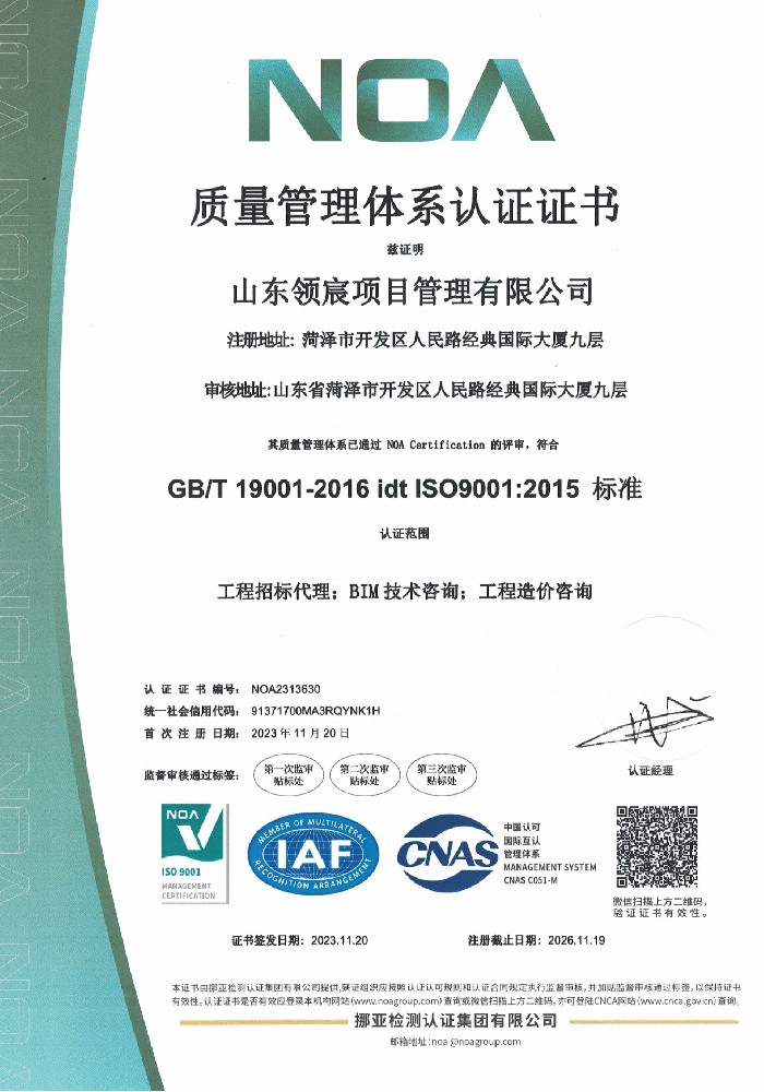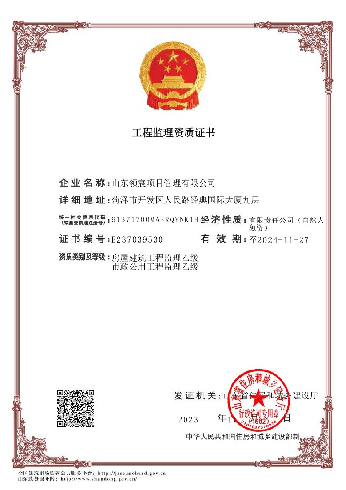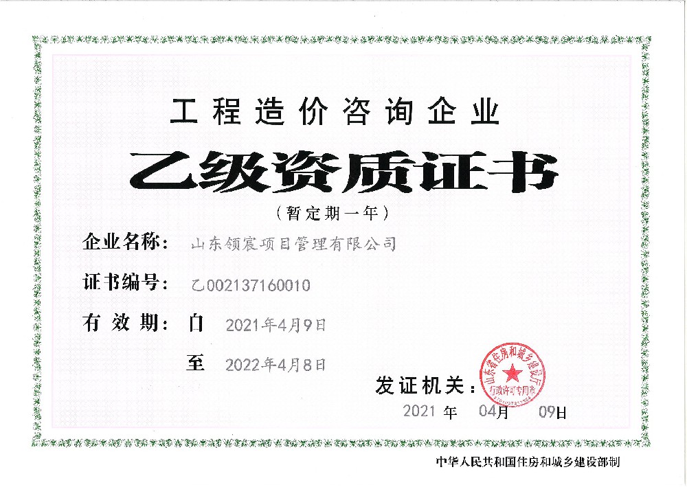 山東領宸項目管理有限公司是一家以全過程工程咨詢?yōu)楹诵牡淖稍兎展荆竟粳F(xiàn)具備工程造價咨詢乙級資質(zhì),房屋建筑工程、市政工程監(jiān)理乙級資質(zhì)和招標代理備案。公司擁有專業(yè)的工作團隊及豐富的行業(yè)經(jīng)驗,在行業(yè)領域內(nèi)具有雄厚的實力,企業(yè)管理人員擁有行業(yè)20年以上的資深行業(yè)工作經(jīng)驗。公司現(xiàn)有專業(yè)技術人員50余人,具有一級注冊造價工程師、注冊監(jiān)理工程師、一級注冊建造師、二級注冊建造師、招標師等工程類國家注冊執(zhí)業(yè)資格證書人員合計30余人以及高級工程師3人,持證上崗率達到90%......
